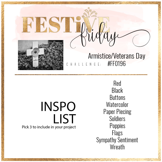 This card is my contribution to the Design Team’s selection for the latest Festive Friday Challenge, which is celebrating Armistice or veterans Day.