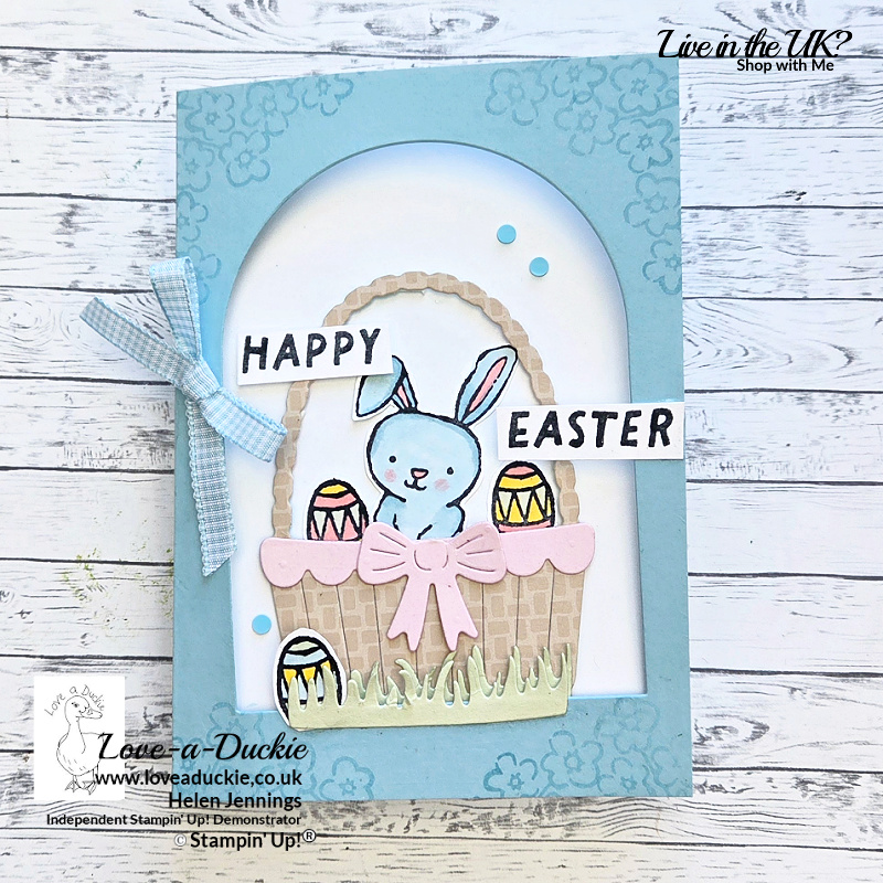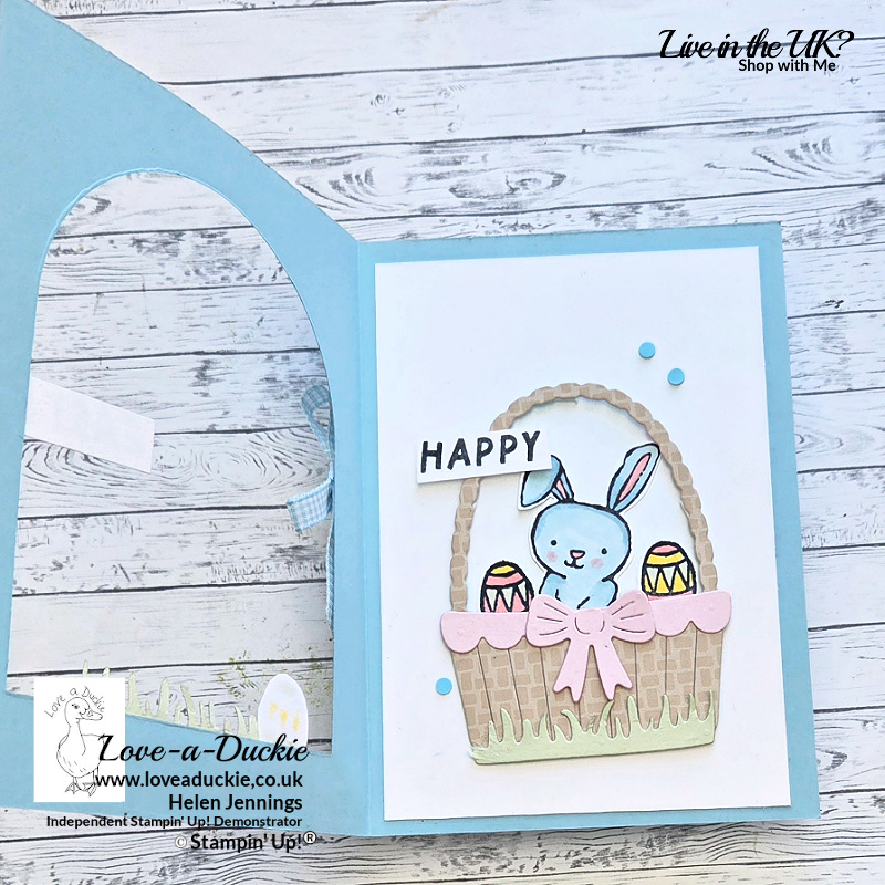 My project used: Pastel Colours, Ribbon, Aperture Card, Rabbits, Easter Eggs, Easter Greetings, Basket.
