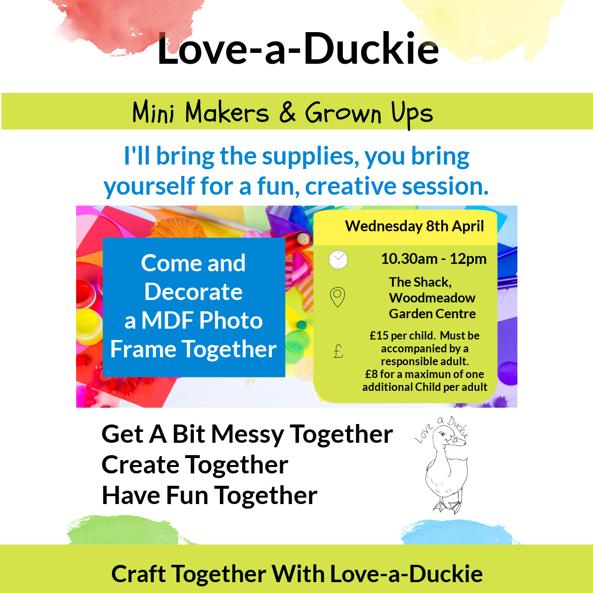 This Easter Holiday come and join us for this fun workshop where children can work with their grown up to decorate a MDF photo frame. You can then proudly display it with a photo of your choice. You could even take a photo on the day of you creating it together.
