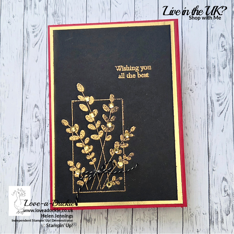 A wrap of Black & Gold twine finishes the card with subtle texture and balance.