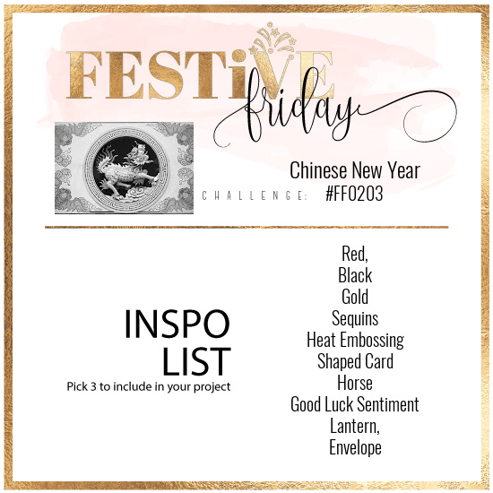 This card is my contribution to the Design Team’s selection for the latest Festive Friday Challenge, which is celebrating Chinese New Year.