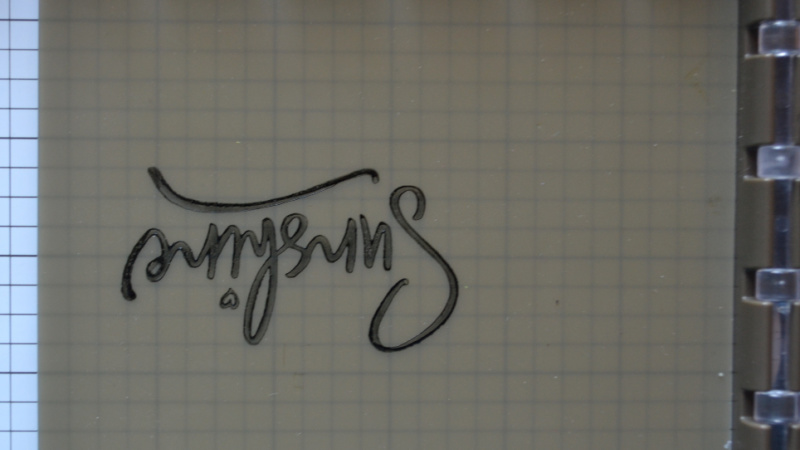 Place your cardstock over the Silicone Mat and close your Stamparatus again to apply pressure on the inked image on the Mat. You will end up with your image stamped lightly on the back of your cardstock doing this, but it will be hidden when you glue the piece of cardstock on a layer or card base. When you lift your cardtock, you will have an upside down, mirror image stamped onto it.