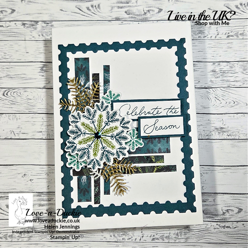 This card was created for a recent class using the beautiful Elegant Pine Snowflake Suite. The snowflakes in this suite are cleverly made up of layering pine needle images. The bumper sets of stamps and dies enable you to create the most beautiful stamped images and die cut pieces.